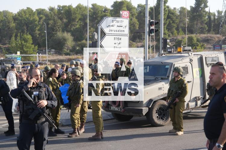 Cisjordania, Palestina.- En las fotos, muestra el cruce de Gush Etzion, al sur de Jerusalén, tras un ataque palestino con un vehículo y un arma blanca el 18 de noviembre de 2025. Un israelí falleció y otros tres resultaron heridos en un cruce de carreteras en el sur de Cisjordania ocupada, donde unos individuos atropellaron a un grupo de personas y luego las atacaron con armas blancas, según informaron los servicios de emergencias israelíes MDA y Hatzalah.