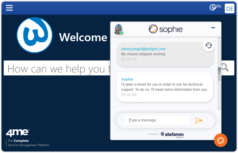 PALO ALTO, Calif., Jan. 17, 2022 (GLOBE NEWSWIRE) -- A standard 4me integration with Stefanini's Sophie is now available from the 4me App Store. Sophie is a virtual agent with natural language capabilities for human-like user support. She provides 24/7 first-level support. Sophie can help end users navigate through voice interaction, open and consult tickets, look for relevant articles, or transfer them to human support agents. She is the latest addition to the rapidly growing 4me App Store.