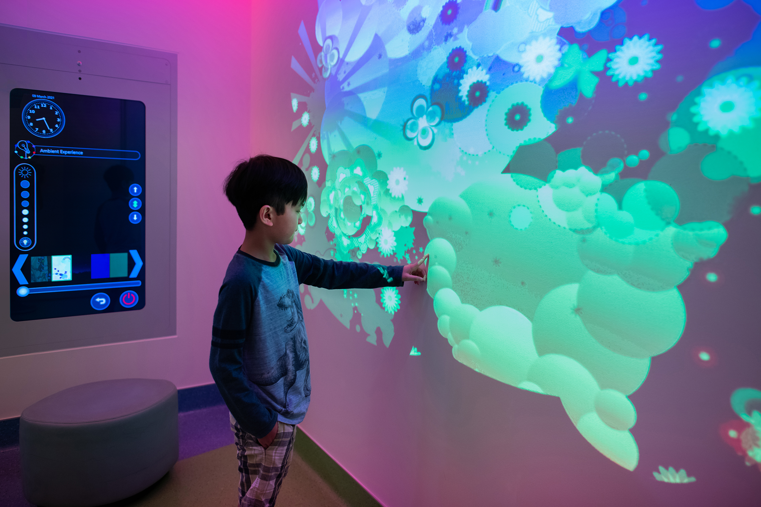 Co-development of the Ambient Experience behavioral health rooms for Children's Medical Center Dallas was led by Philips Experience Design, a dedicated group within Philips that works collaboratively with clinicians, patients, and consumers to pinpoint issues, define opportunities, translate insights, and co-create solutions that improve the patient and staff experience. The group combines multiple specialists in the design of spaces, software, services, and multimedia content in order to create human-focused innovations that offer hospital patients and staff an engaging and pleasant experience. Their work can be applied to virtually any hospital setting – from radiology rooms, cath labs, and ORs, to preparation and recovery areas, reception areas and waiting rooms.