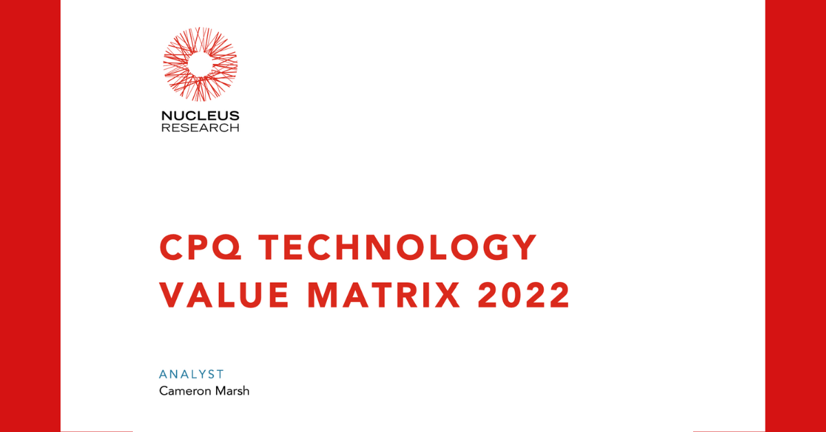Screenshot of the cover of the report by Nucleus Research entitled "CPQ Technology Value Matrix 2022"