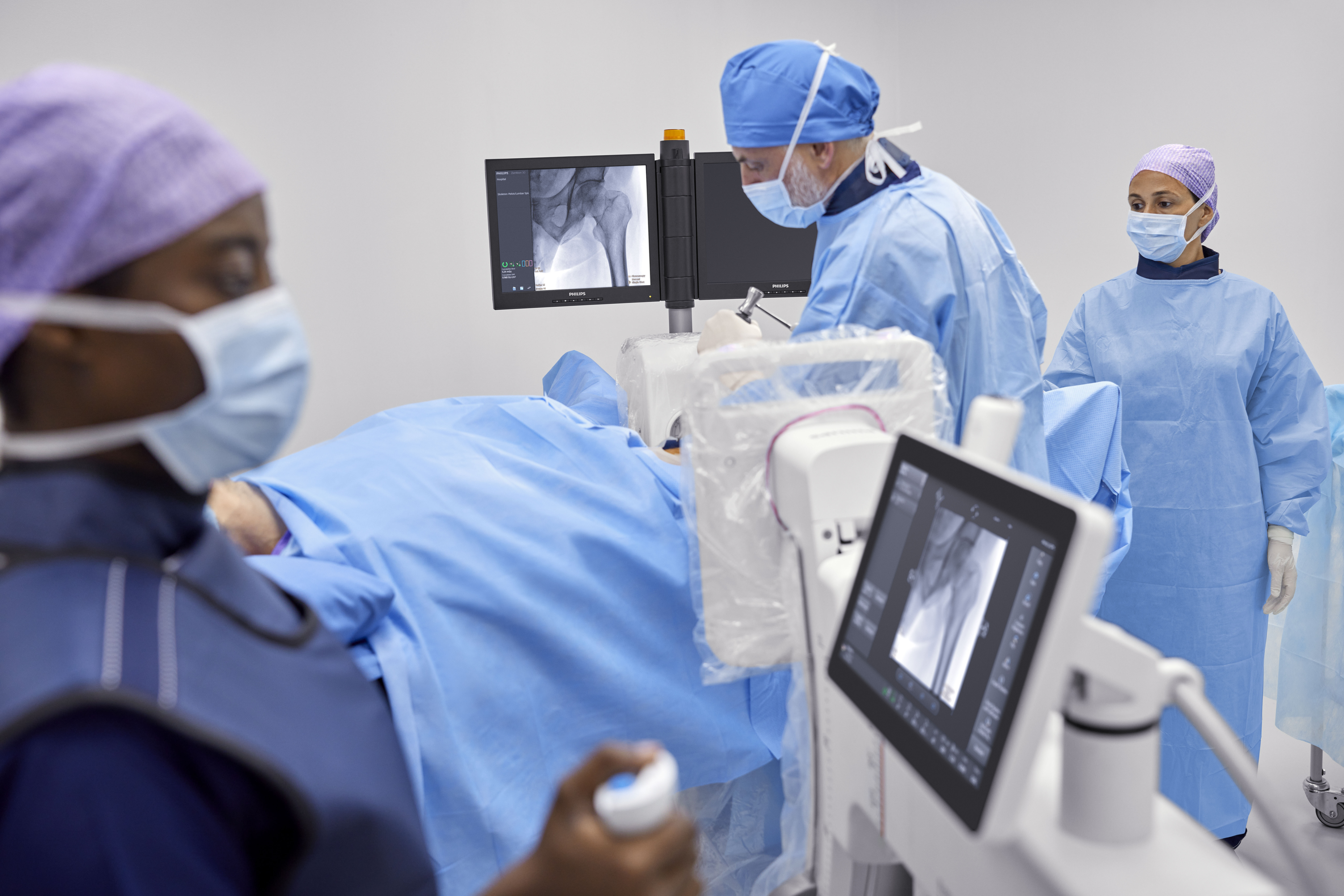 Zenition 30 offers versatility for a range of clinical procedures which include orthopedics, trauma, spine, pain management and other surgical procedures. Featuring Philips’ latest-generation flat detector technology, advanced imaging algorithms, and personalized user profiles, the new system delivers superior image quality, dose efficiency, and workflow customization. From the moment a surgeon logs on, the Zenition 30 automatically adjusts to their preferred settings and way of working, contributing to fewer manual adjustments and more first-time-right imaging. In addition to rapid set-up and protocol selection, the Zenition 30 also offers surgeons much greater control over C-arm positioning during surgical procedures.